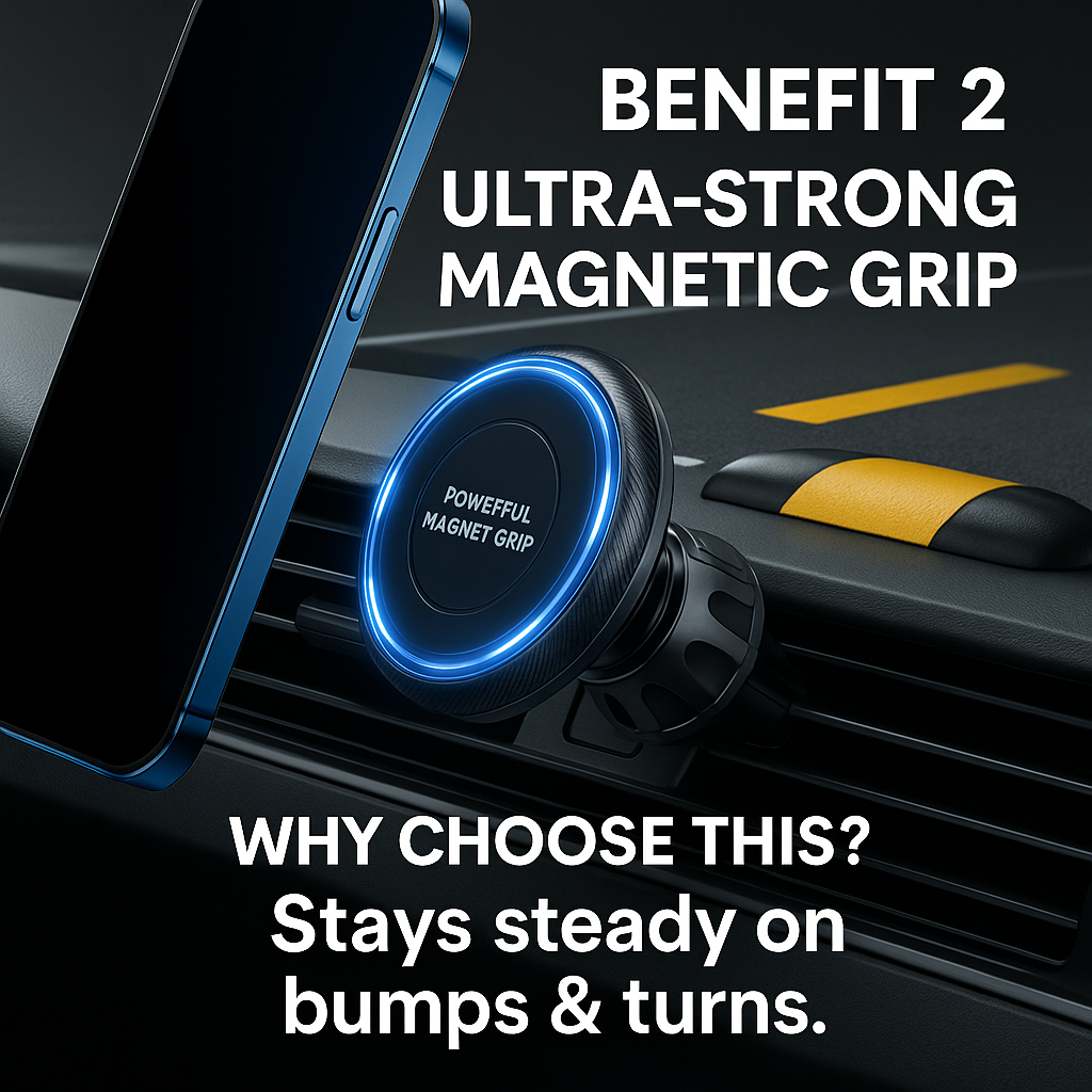 - 🧲 Ultra-strong magnetic grip — rock-solid over bumps & sharp turns.